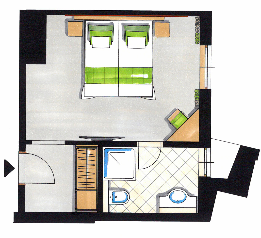 Die "Dachs" Doppelzimmer im alpinen Stil sind die kleinste Zimmerkategorie, aber sehr gemütlich.