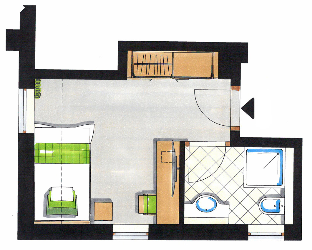 In unseren gemütlichen "Wolf" Einzelzimmer im alpinen Stil finden Sie alle Annehmlichkeiten vor,